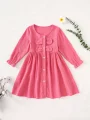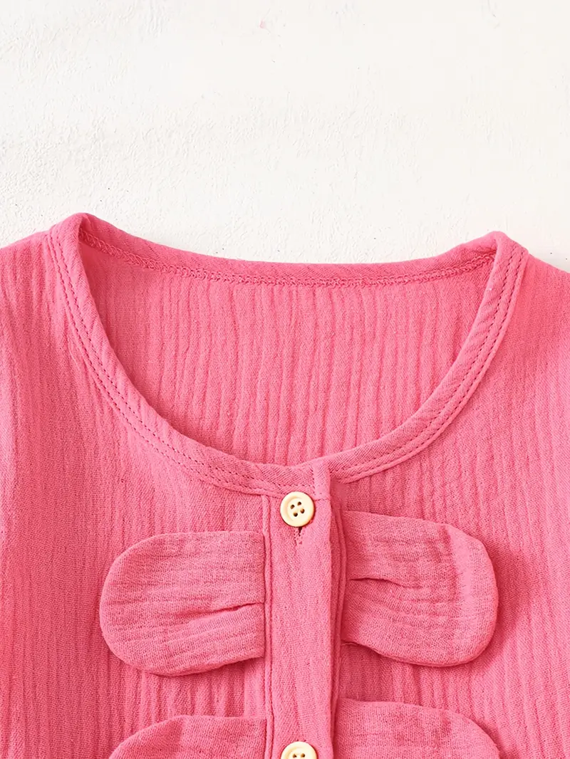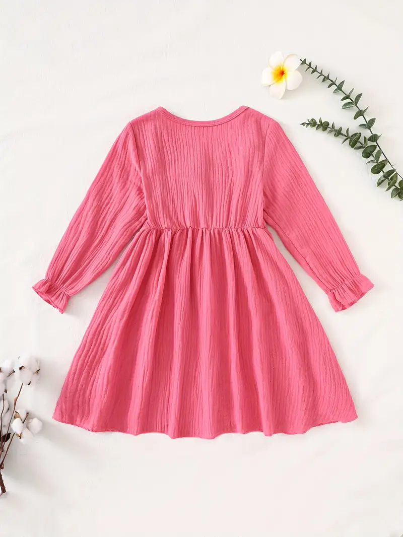‘ Pure Cotton Pleated Dress with Front Bow – Long Sleeve A-Line Winter Dress &, Soft Round Neck Solid Green Casual Outfit, Machine Washable Fall & Winter Clothing